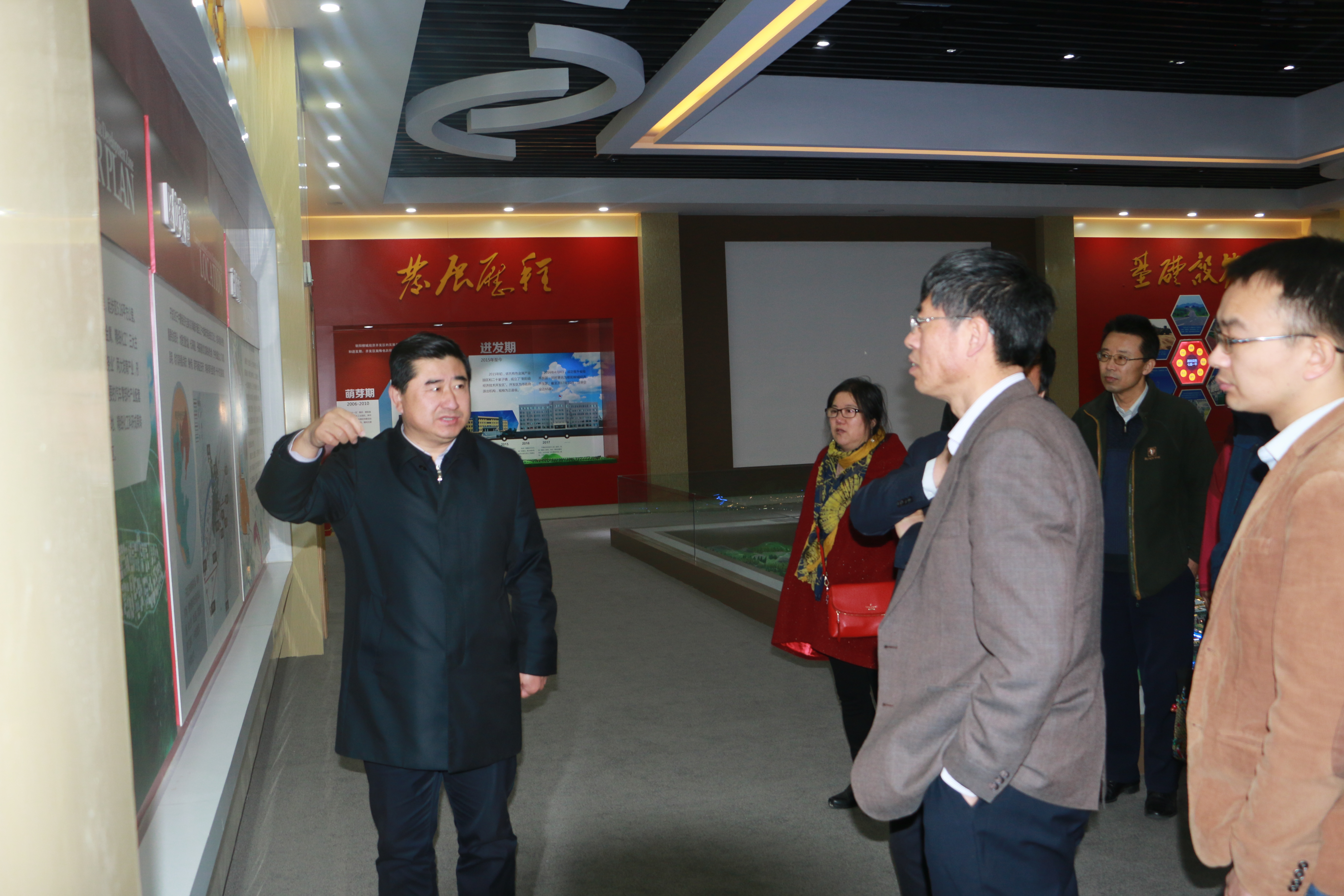 在县委常委、常务副县长、朝阳柳城经济开发区管委会副主任曹治纲,县委常委、副县长杨显民的陪同下,经理赵震教授一行首先深入现场参观了产业园建设情况,并详细听取了项目办负责人就项目建设情况、园区功能布局、市场前景等的介绍,重点参观了朝阳东大矿业研究院、朝阳荣星橡胶有限公司等。