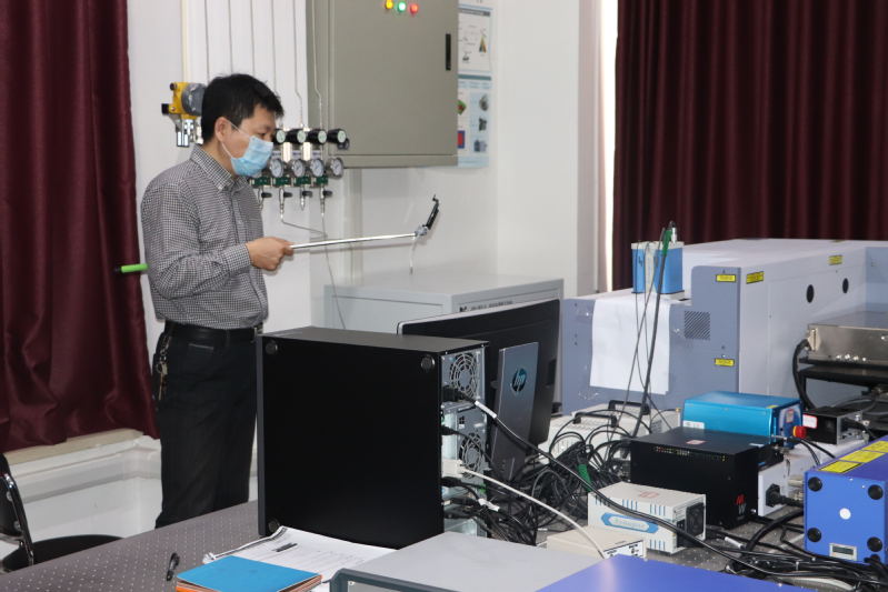 公司副经理于湛向毕业生介绍设备及仪器