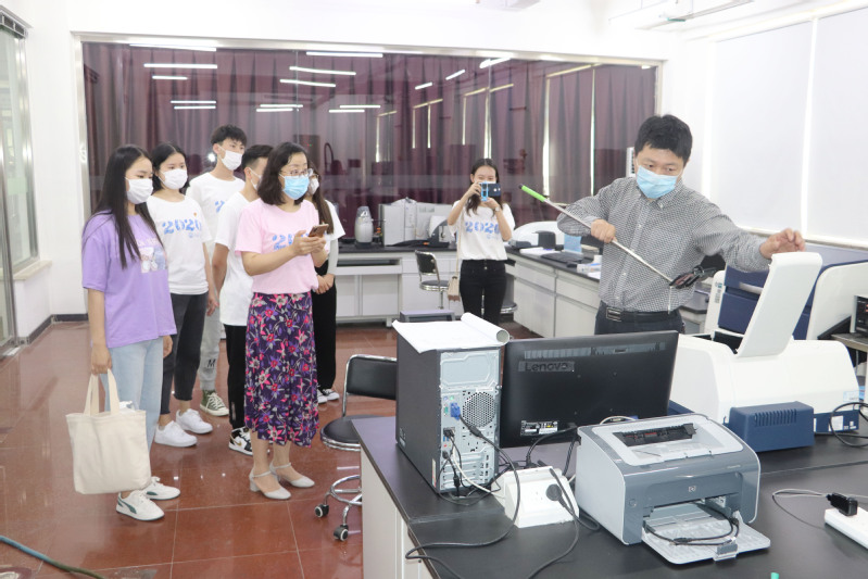 党总支副书记赵广红、辅导员张慧洁老师及员工代表在实验中心合影留念
