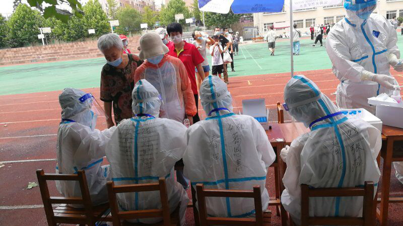 大连市大连湾 医护人员正在为居民们进行检测