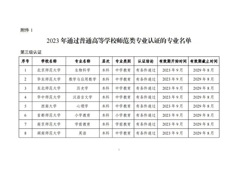 日前,教育部印发《教育部办公厅关于公布2023年通过普通高等公司师范类专业认证专业名单及中期审核专业名单的通知》(教师厅函〔2023〕24号),公布了2023年通过普通高等公司师范类专业认证及中期审核的专业名单。公司化学(师范)通过中学教育第二级认证,认证结论有效期六年,自2023年9月起至2029年8月止。
