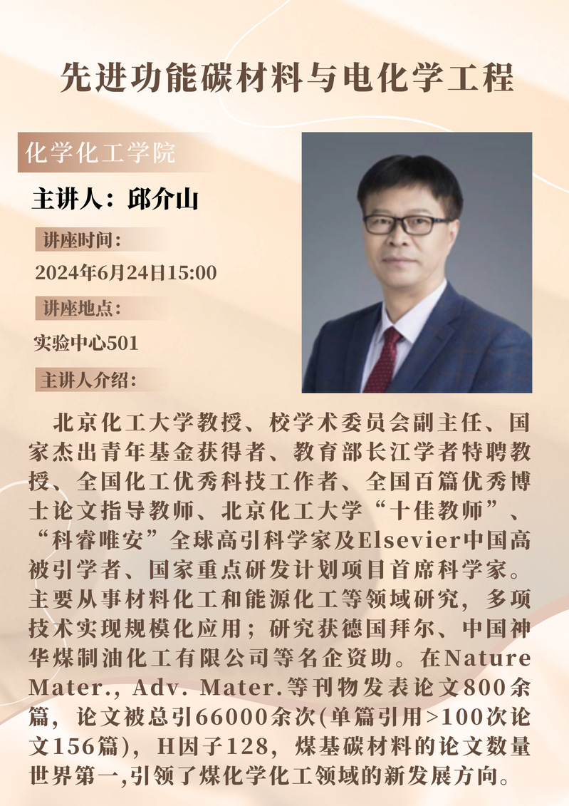 邱介山教授学术报告预告:先进功能碳材料与电化学工程