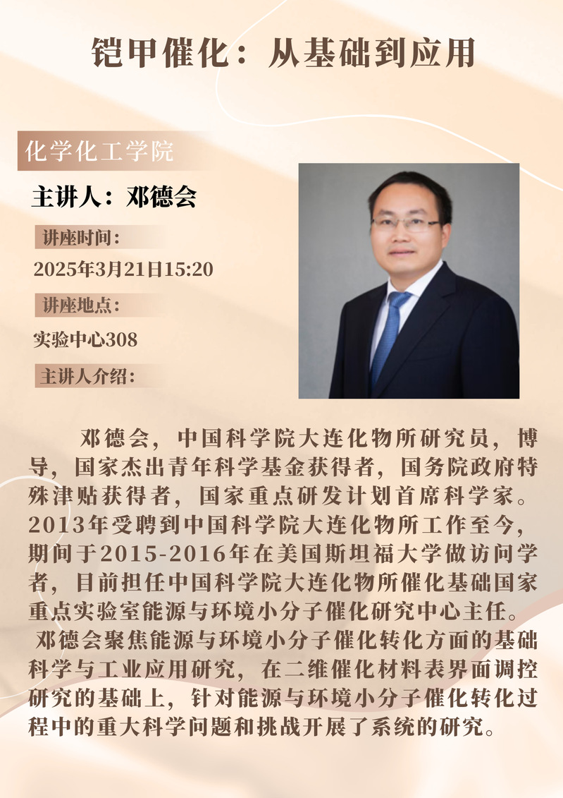 邓德会教授学术报告预告:铠甲催化:从基础到应用