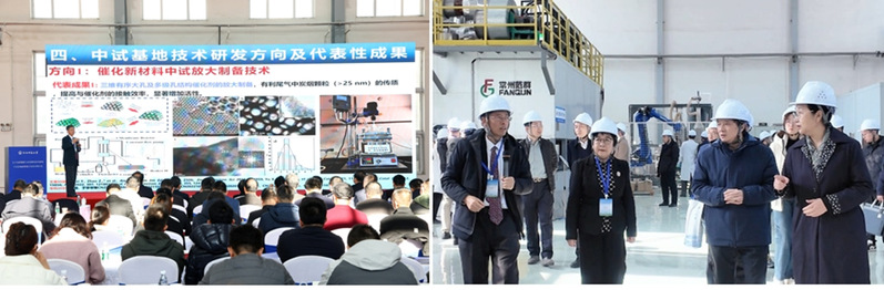 在中试基地主任赵震的带领下,与会嘉宾前往基地实地考察,近距离了解油气资源高效转化与低碳利用技术等40余项前沿科技成果的研发场景与应用效果,并对中试基地的建设成果和技术成熟度给予充分肯定。
